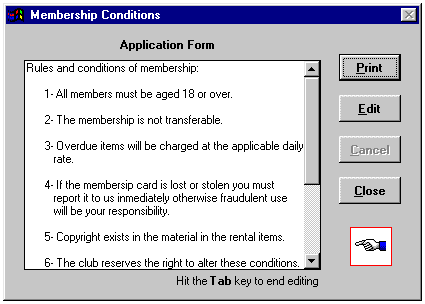 This option will enable you to print an application form for your new customers. The default form is in English, but you can edit and save it using your own language.