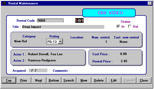 The 'Rental Maintenance' allows you to maintain a database containing information on your tapes for rental.